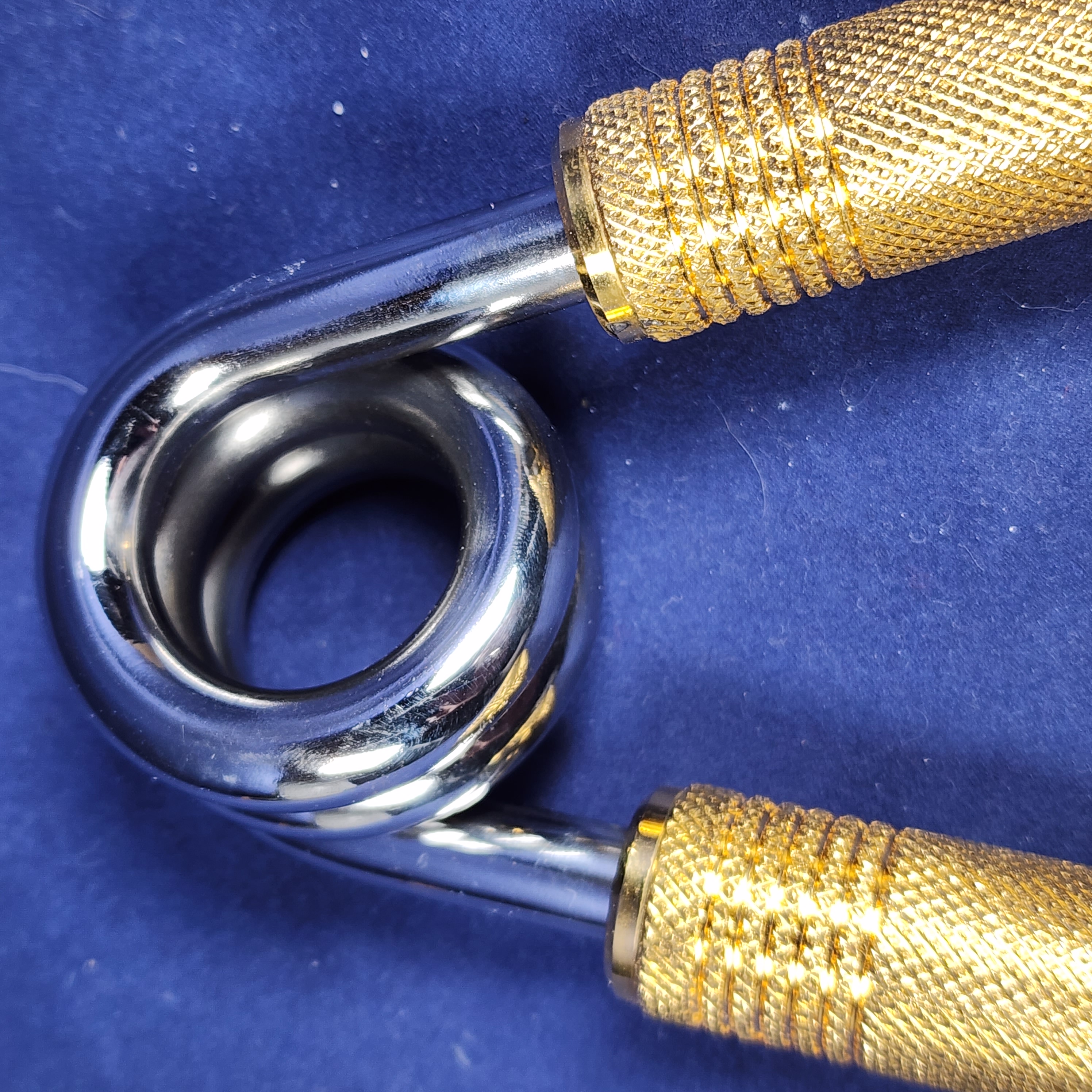 6-band, standard spread, 24k gold plated handles, polished spring, mid mount
